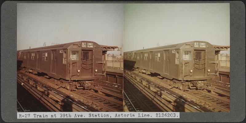 R-27 Train at Broadway Sta., Astoria "L". 3186101.