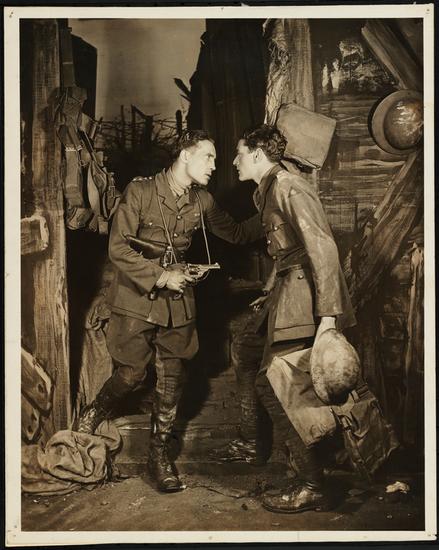 [Derek Williams as 2nd Lieut. Raleigh and Leon Quartermaine as Lieut. Osborne in "Journey's End".]