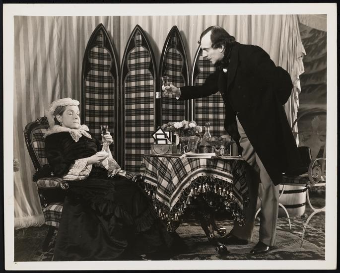 [Helen Hayes as Victoria and Vincent Price as Prince Albert in "Victoria Regina".]