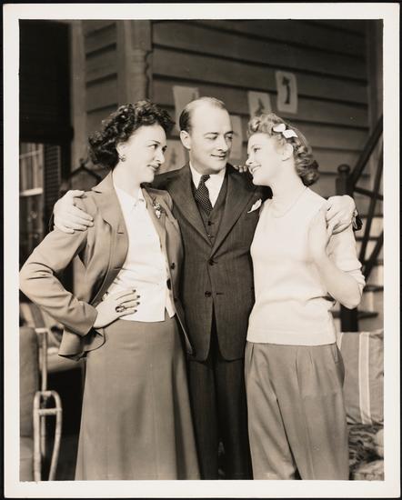 [Jessie Royce Landis as Janet Archer, Joan Caulfield as Corliss Archer and Robert Keith as Harry Archer in "Kiss and Tell".]