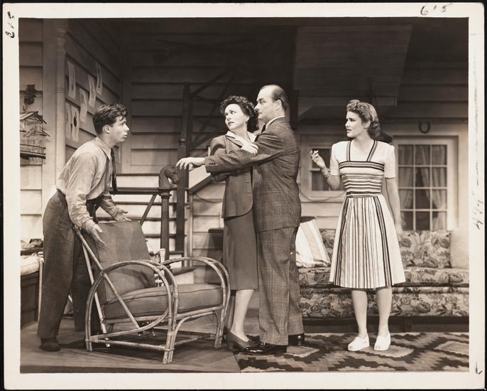 [Jessie Royce Landis as Janet Archer, Robert Keith as Harry Archer and Joan Caulfield as Corliss Archer in "Kiss and Tell".]