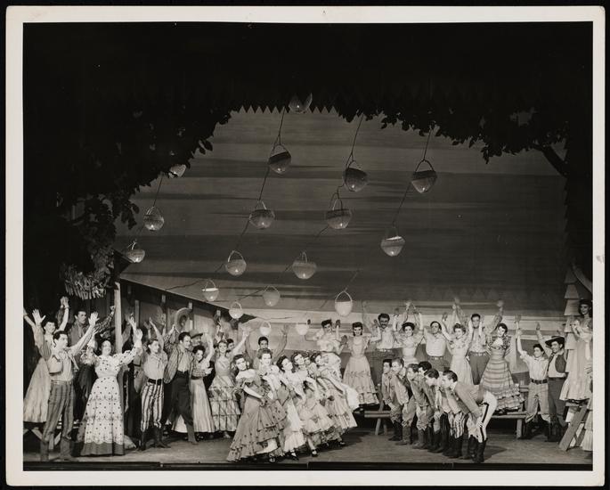 [Jane Fischer, Vladimir Kostenko and Fern Whitney in "Oklahoma!".]