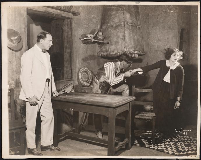 [Holbrook Blinn as Pancho Lopez, Frances Carson as Lucia Pell, and Frank Conroy as Gilbert Jones in "The Bad Man".]