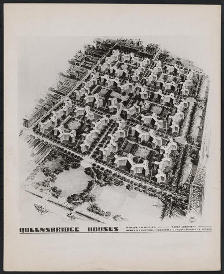 [Queensbridge Houses with Midtown Manhattan in the distance.]