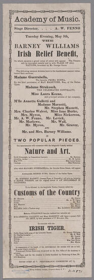 Friday evening, December 4, 1863, Mr. and Mrs. Barney Williams in the great fairy spectacle entitled "The Lakes of Killarney; or, The Brides of Glengariff"