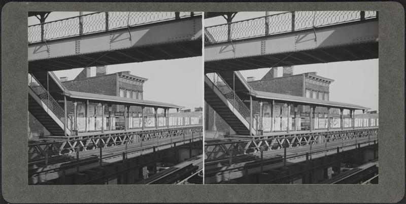 11144802. Myrtle Ave. "L" West from Bridge at Grand Ave. Station.