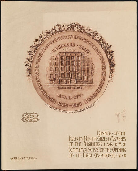 Dinner of the Twenty-ninth Street Members of the Engineers Club Commemorative of the Opening of the First Clubhouse