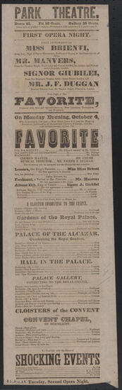 Monday evening, October 12, will be performed for the first time on any stage, a play in five acts, entitled "The Wife's Secret"