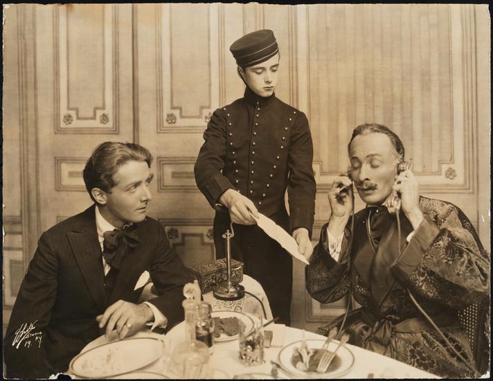 [John L. Shine as Vermillon, Lionel Atwill as Grand Duke Feodor Michaelovitch, and Vivian Tobin as Marie Vermillon in "The Grand Duke".]