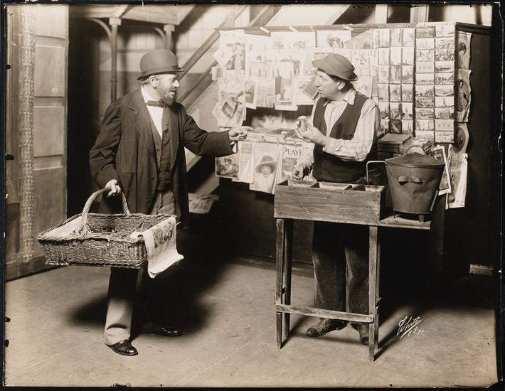 [David Warfield as Simon Levi and Marie Bates as Mrs. Eagan in "The Auctioneer".]