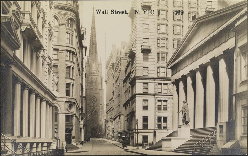 Federal Hall, Wall Street and Trinity Church, New York, 1789.