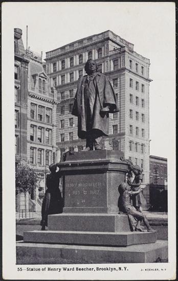 [Statue of Henry Ward Beecher in front of the Downtown Brooklyn post office.]