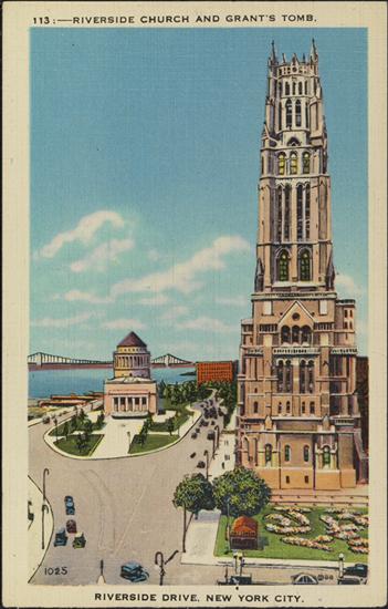Riverside Church and Grant's Tomb, New York City. George Washington Bridge in Distance.