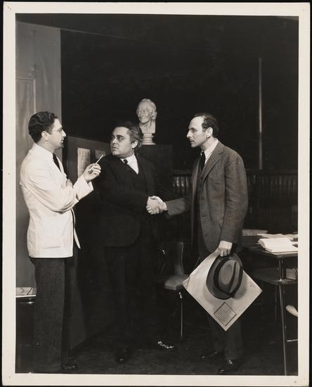 [Walter C. Kelly as Solomon Fitzmaurice, J. Edward Bromberg as Wingblatt and Russell Collins as Peebles in "Both Your Houses".]