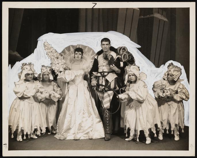 [Lynn Fontanne as Katharina and Alfred Lunt as Petruchio in "The Taming of the Shrew".]