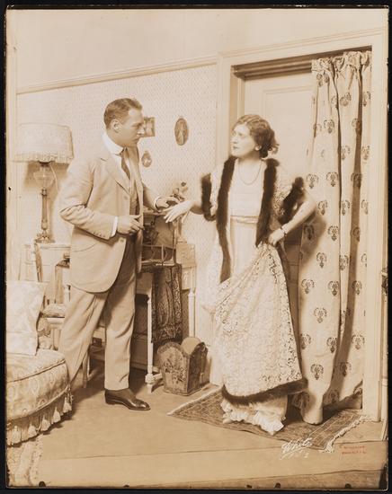 [Virginia Pearson as Hattie King and Bruce McRae as Harry Lindsay in Act 2 of "Nearly Married".]