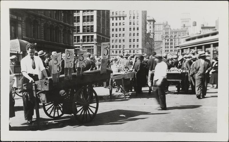 [Destitute men sleeping in front of George Washington statue at Union Square.]