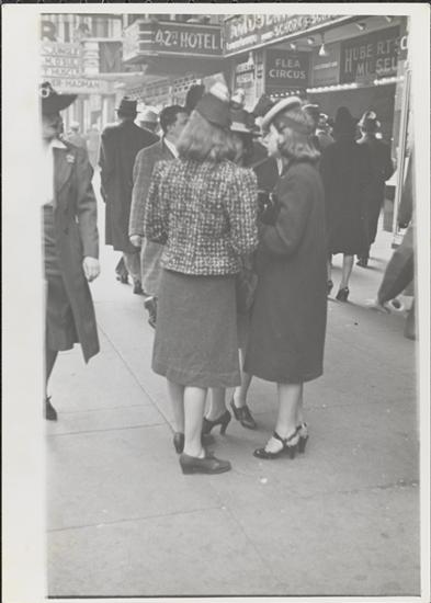 [Pedestrians on sidewalk in Times Square.]