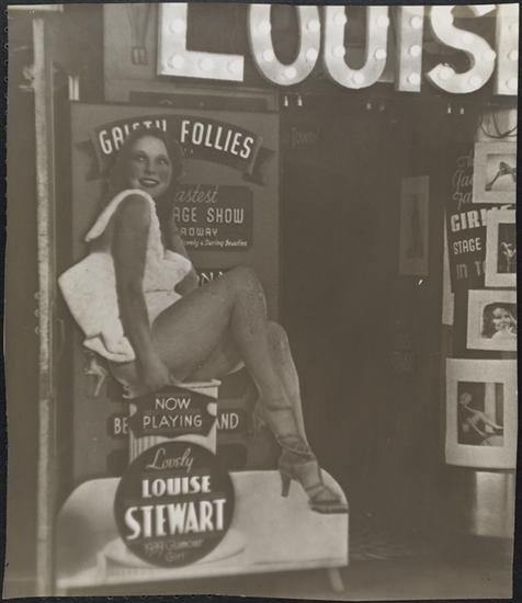 [Sign advertising Follies Girls in front of Stauch's building.]