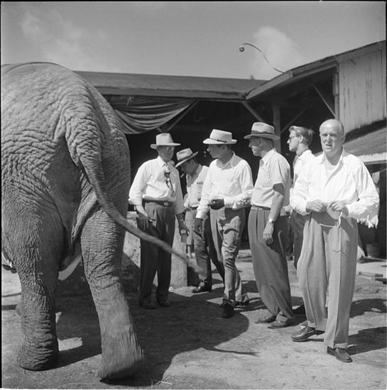 Circus [Circus elephants forming a ring with ringmaster in the middle.]