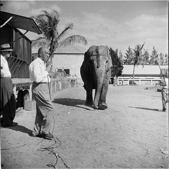 Circus [Circus elephants forming a ring with ringmaster in the middle.]
