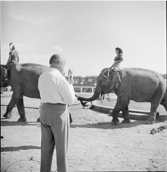 Circus [Circus elephants walking in a circle, with ringmaster in the middle.]