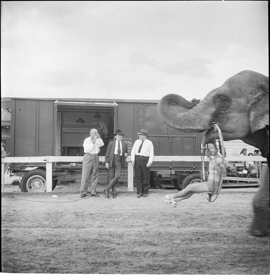Circus [Circus elephants forming a ring with ringmaster in the middle.]