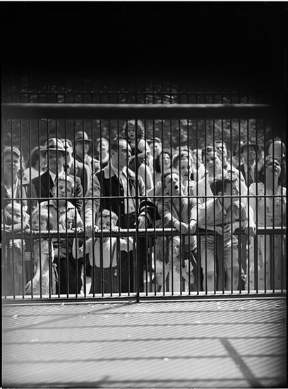 How People Look to Monkeys [Crowd looking at the monkey cage in a zoo.]
