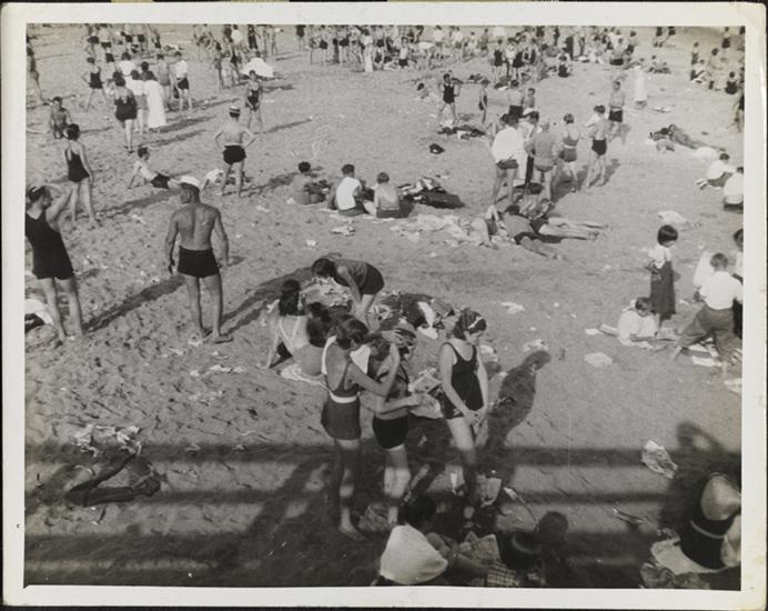 [People on Coney Island beach.]
