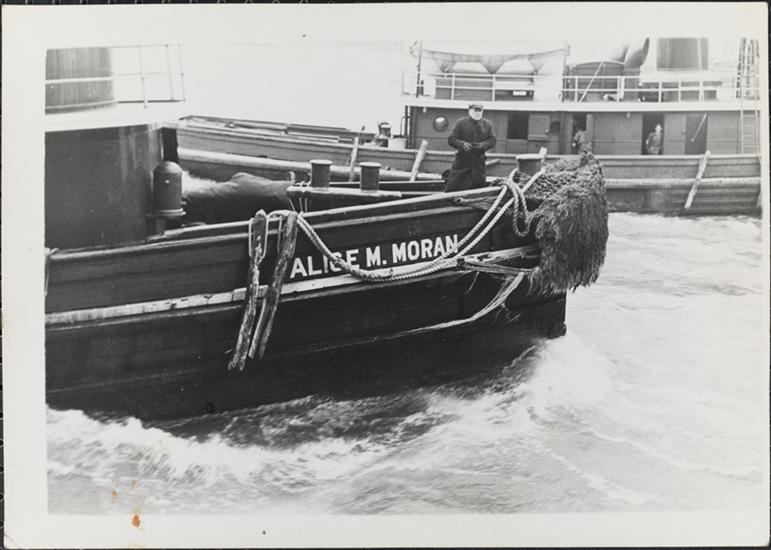 [Close-up view of Alice M. Moran and E. F. Moran Jr. tugboats.]