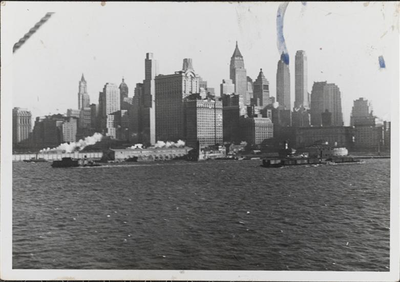 [New York Harbor and Manhattan and Brooklyn skylines.]