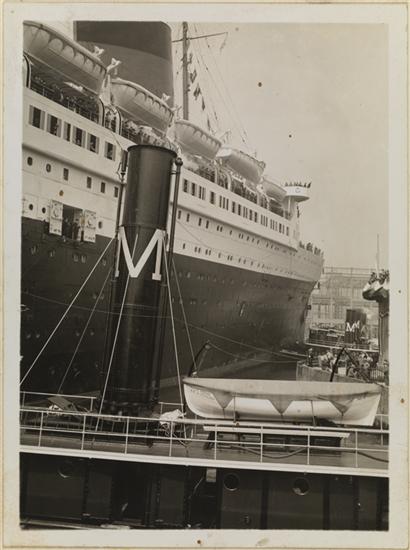 [Moran tugboat with Queen Mary ship.]
