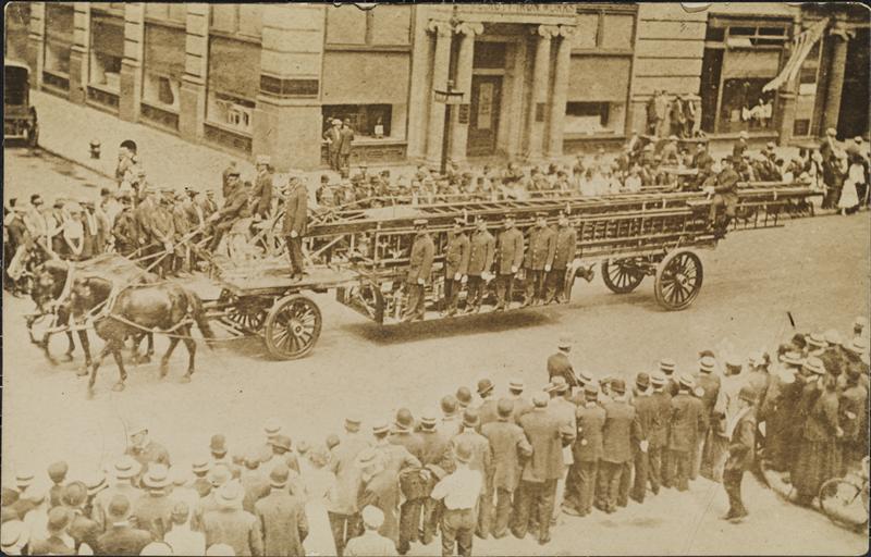 Truck 8 Capt. Farley at Work Horse Parade Received First Prize 1907