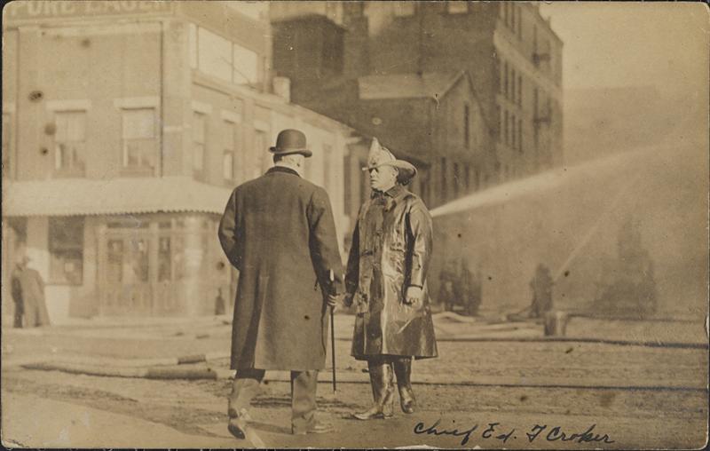 Chief Ed. F Croker - Mayor McClellan Tim Sullivan at High Pressure Test Oct. 22 - 1908.
