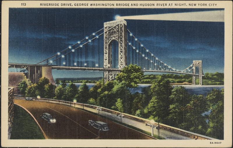 Riverside Drive, George Washington Bridge and Hudson River at Night.