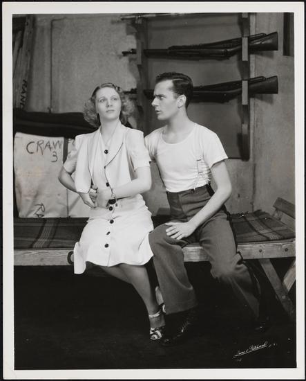 [Mary Mason as Claire Ramm and Wyn Cahoon as Joyce Winfree in "Brother Rat".]