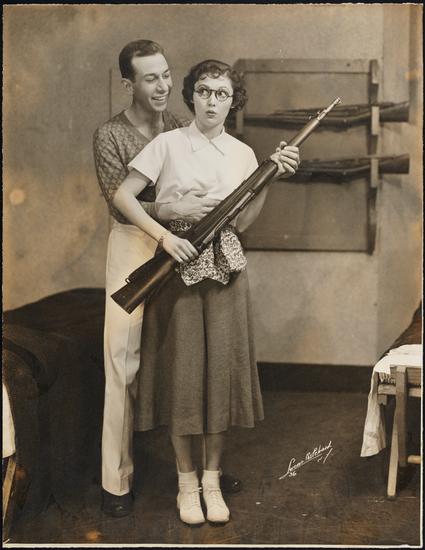 [Mary Mason as Claire Ramm and Wyn Cahoon as Joyce Winfree in "Brother Rat".]