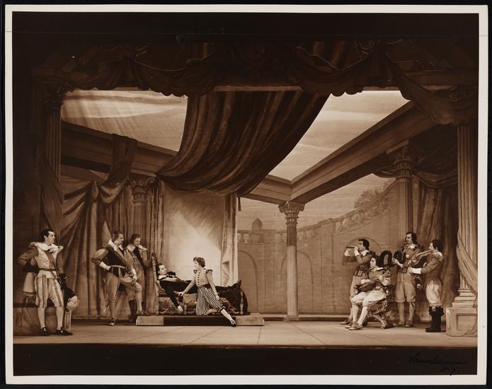 [Helen Hayes as Viola and Maurice Evans as Malvolio in "Twelfth Night".]