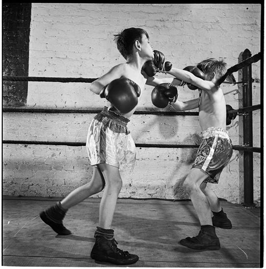 Boxing [at the] Police Athletic League [Two boys boxing.]