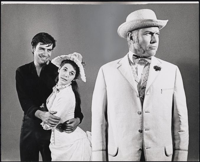 [Susan Watson as Carrie Pipperidge, Eileen Christy as Julie Jordan, and John Raitt as Billy Bigelow in "Carousel".]