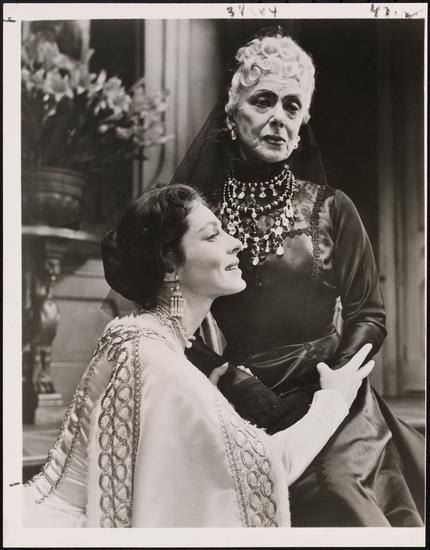 [Viveca Lindfors as Anna and Eugenie Leontovich as Dowager Empress in "Anastasia".]