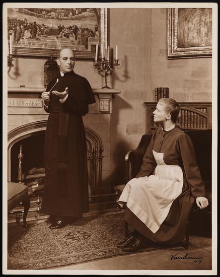 [Cedric Hardwicke as Very Rev. Thomas Canon Skerritt and Julie Haydon as Brigid in "Shadow and Substance".]