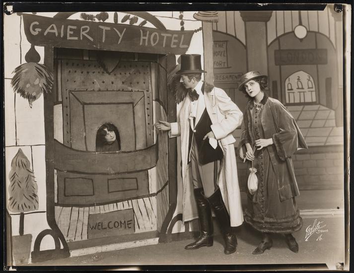 [Herbert Yost as Mr. Salteena and Marie Goff as Ethel Monticue in "The Young Visitors".]