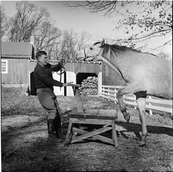 Arthur Godfrey [Godfrey with a horse on a farm.]