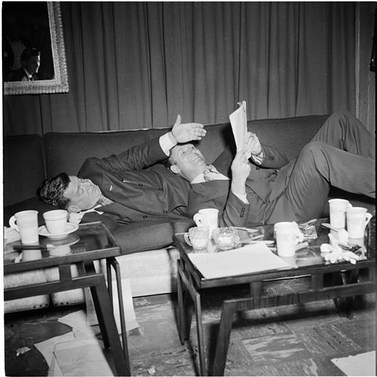 Arthur Godfrey [Godfrey and another man laying on a couch.]