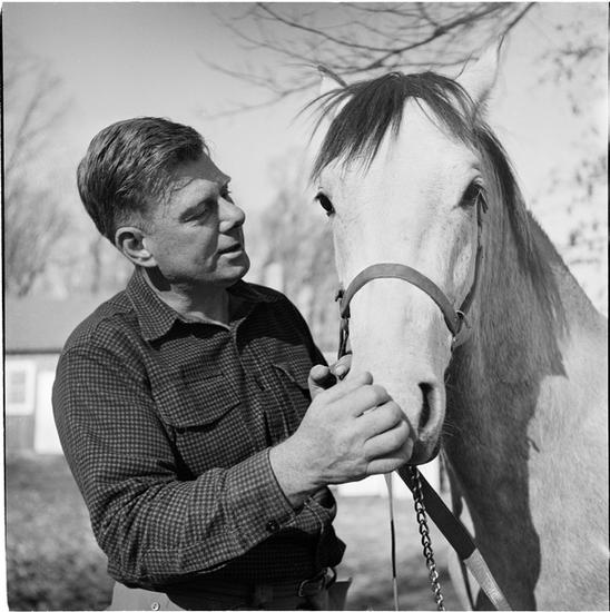 Arthur Godfrey [Godfrey with a horse on a farm.]