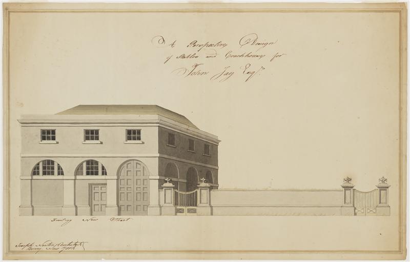 Elevation of stables fronting stables yards, John Jay Esq.