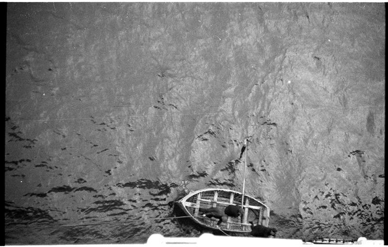 [Felicia Marsh standing next to paintings by Reginald Marsh.]