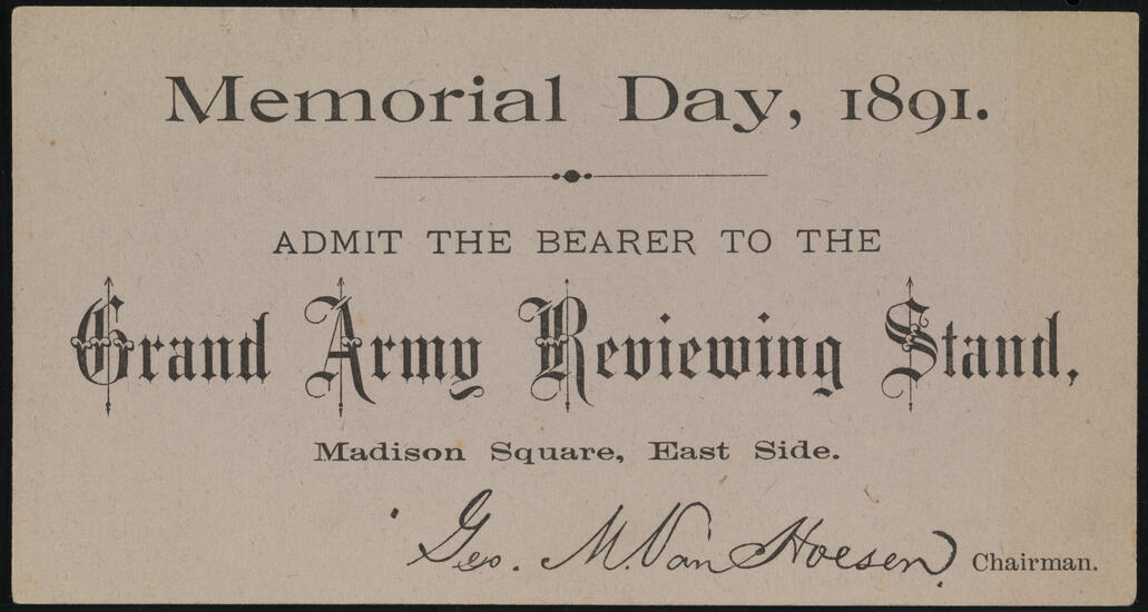 Admit Bearer to Municipal Boat (South Ferry) to Greet His Excellency Generalissimo Armando Diaz