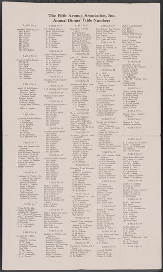 The Fifth Avenue Association, Inc. Annual Dinner Table Numbers